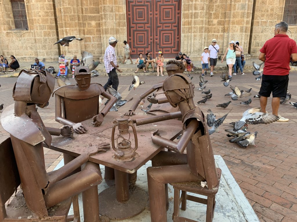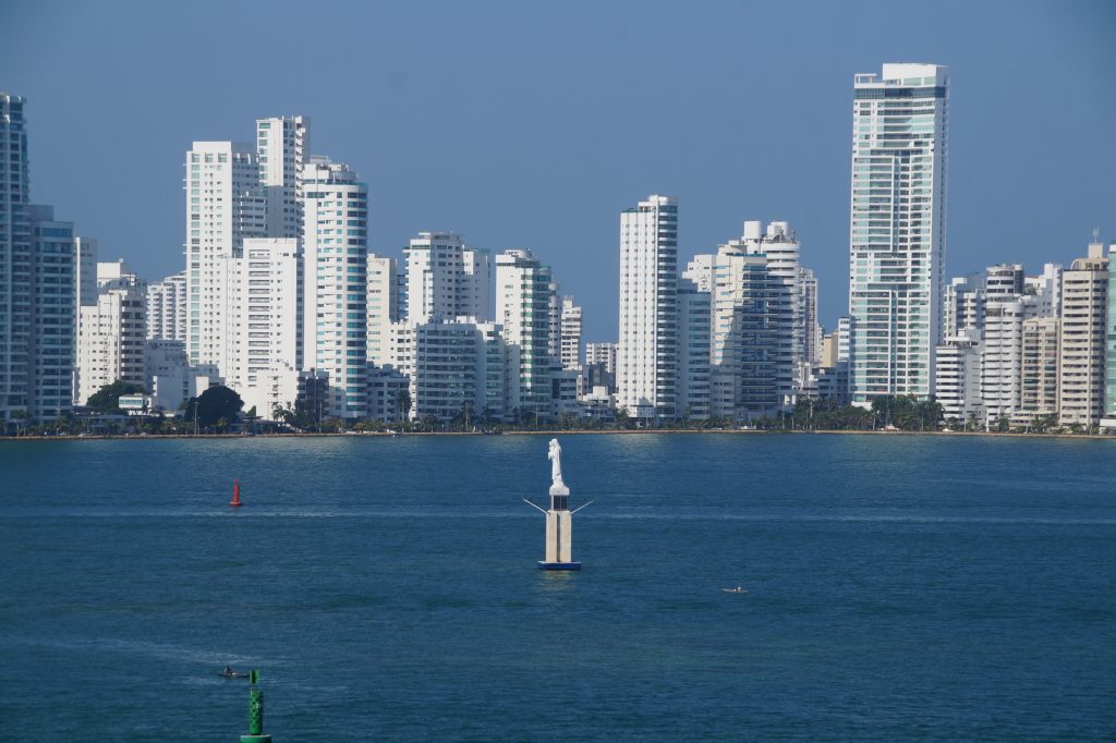 Wir besuchten zuerst das Castillo de San Felipe de Barajas, eine sehr gut erhaltene Festung mit schönem Blick auf die geschützte Hafenbucht und auf der anderen Seite auf das offene Meer. Sie wurde 1630 in Betrieb genommen und der Ausbau begann 1657 auf dem 40 m hohen Hügel San Lázaro. 1762 wurde eine umfassende Erweiterung vorgenommen, die dazu führte, dass der gesamte Hügel mit dieser mächtigen Bastei bedeckt wurde. Im Anschluss fuhren wir in die Altstadt. Diese beeindruckte mit gut erhaltenen Häusern und prachtvollen Holzbalkonen, teilweise üppig bepflanzt. Viele Straßenhändler mit Souvenirangeboten oder frischen Getränken verstärkten das Sommerfeeling, welches bei 37° C schon aufkam. Zur Besichtigung gehörte auch der Inquisitionspalast und die Kirche Sankt Petrus Claver, die zu Ehren des in Spanien geborenen Mönchs Pedro Claver (1580–1654) diesen Namen trägt, der hier lebte und starb. Der Mönch, der „Apostel der Schwarzen“ genannt wurde, verbrachte sein Leben damit, die Sklaven zu unterstützen, die hier aus Afrika eintrafen. Kolumbien war das einzige Land Südamerikas, wo der Sklavenhandel nicht verboten war. Die katholische Kirche verbot Menschenhandel, aber Sklavenhandel war erlaubt – unglaublich verrückt. Die Altstadt wird von einer 11 km langen Stadtmauer umschlossen. Zum Ausflug gehörte auch ein Besuch des Esmeralda Museums, welches aber eher ein Geschäft für Smaragdschmuck mit einer kleinen Ausstellung war. So erfuhr man allerdings auch, dass in Kolumbien Smaragde gefördert beziehungsweise wie sie abgebaut werden. Die Arbeiten an der Kathedrale von Cartagena begannen 1575, wurden jedoch 1586 durch die Kanonen von Francis Drake teilweise zerstört. Das Gebäude, das offiziell als Basilika Santa Catalina de Alejandría bekannt ist, wurde erst 1612 fertiggestellt. Auf dem Rückweg ging es an den Hochhäusern entlang, welche aus der Nähe nicht mehr so weiß und schön erschienen. Die Glanzzeiten hatten die meisten schon hinter sich. Meist werden sie als Hotels genutzt. Beim Auslaufen allerdings verzauberte uns die Skyline erneut, denn die Sonne ging hinter und zwischen den Häusern unten und tauchte sie in ein wunderschönes rotes Licht. Wetter: 29°C sonnig