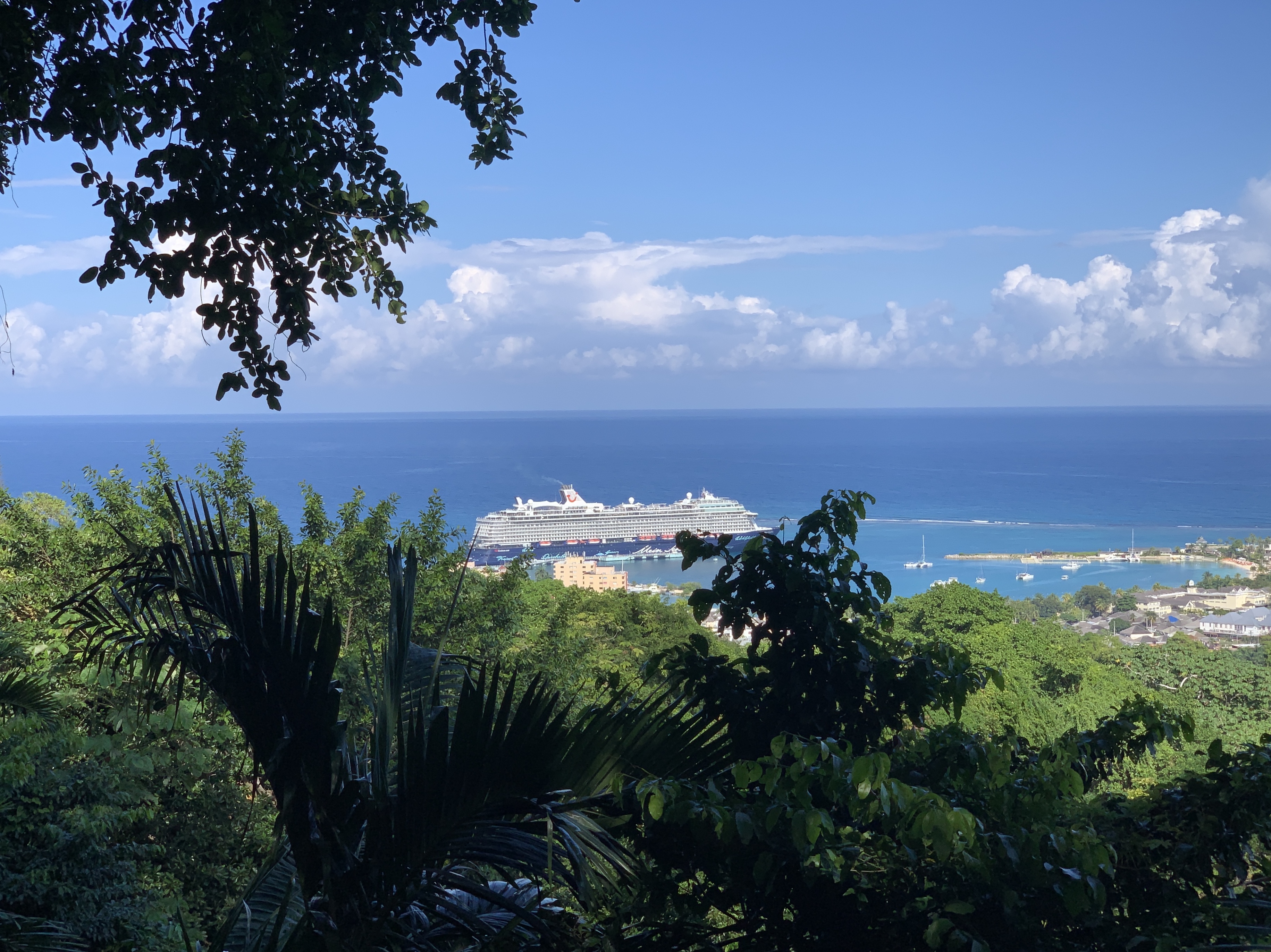 Wir unternahmen einen Spaziergang durch einen einzigartigen und wunderschönen Garten mit einer großen Vielfalt an tropischen Pflanzen. Das kristallklare Wasser des Turtle River fließt in mehrere Teiche, in denen verschiedene Koi-Karpfen und Tilapia-Fische leben. Bei diesem kleinen Rundgang erfuhren wir einiges Wissenswertes über die Natur vom ortsansässigen Guide. Von einem Aussichtspunkt konnten wir die Stadt und das Kreuzfahrtschiff fotografieren. Die Fahrt ging dann durch Fern Gully, einer Straße, die südlich von Ocho Rios nach Colgate führt. Das Gebiet hat seinen Namen von der Vielfalt von ca. 300 Farnenarten, die hoch über der Straße aufragen und einen schattigen Tunnel aus üppigem Grün bildet.