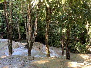 Wir hatten uns extra noch Badeschuhe gekauft, um den Wasserfall hinauf zu steigen. Das klang einfacher als es in Wirklichkeit war. Die Treppen, von denen geschrieben wurde, waren nur an wenigen Stellen vorhanden. Wir stiegen über die Felsen, der Guide zeigte uns die Richtung. Er war allerdings für rund 20 Leute zuständig. Die Strömung zerrte ganz schön an den Füßen und ohne die Wasserschuhe hätten wir schwer Halt gefunden. Das Wasser war erfrischend und man sollte um Jahre jünger aussehen, wenn man es trinken würde. Wir haben es beim Umspülen des Körpers belassen…. Zurück in der Stadt aßen wir kurz an Bord zu Mittag und schlendern dann noch ein wenig im Hafen.Wetter: 27°C leicht bewölkt