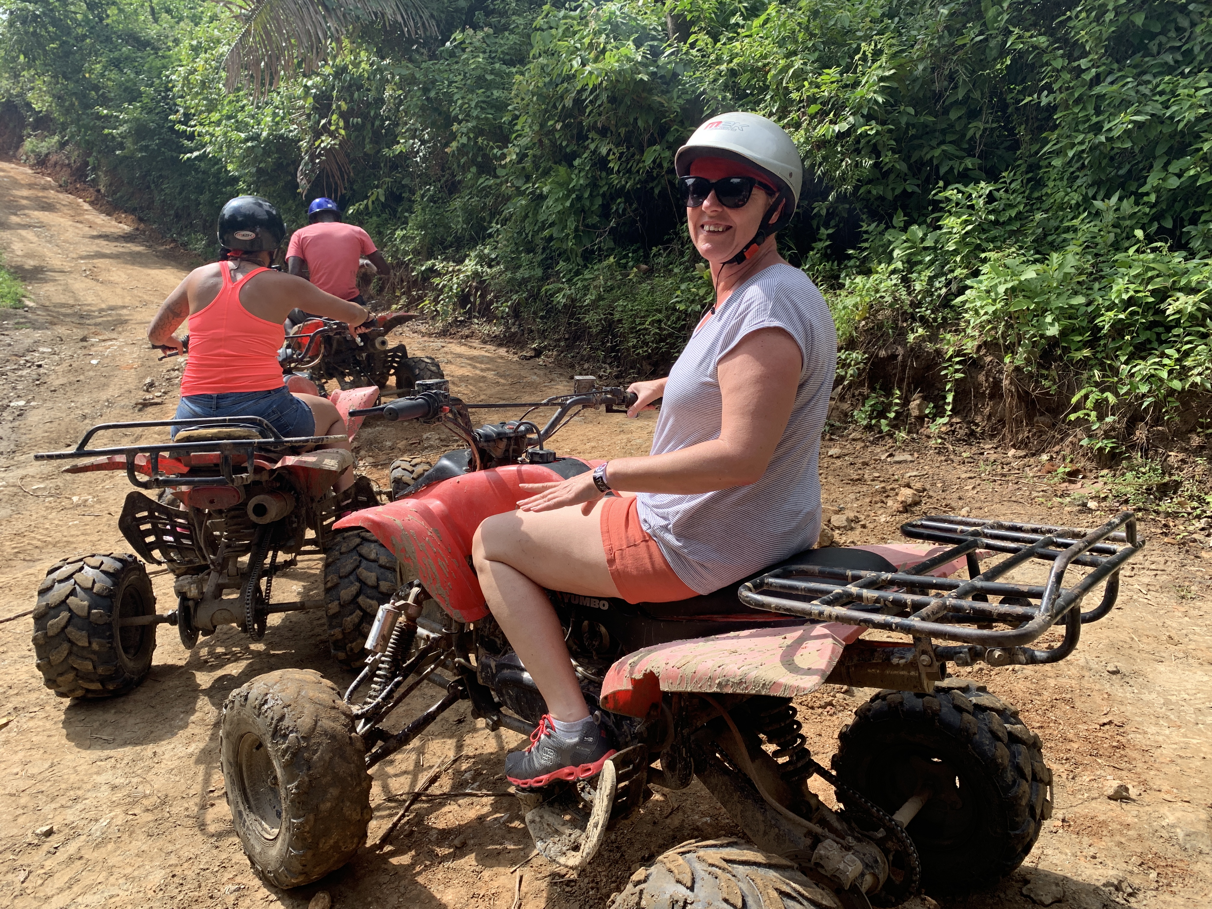 Und am nächsten Tag erreichten wir die Insel Roatan, die größte der Islas de Bahia. Die aufgehende Sonne ließ die Hänge mit den bunten Häusern und auch die Palmen erstrahlen. Die Pier in Coxen Hole ist ziemlich kurz, so dass die Halteleinen per Boot zu kleinen Inseln gebracht und befestigt wurden. Im Hafen hörte man Lateinamerikanische Musik und man konnte die Gruppen beobachten, welche das Schiff verließen, teils für einen Ausflug teils um den Hafen zu besuchen. Mittags starteten wir zu unserem Ausflug, einer kleinen Quadtour mit ATV Jungle Adventure.