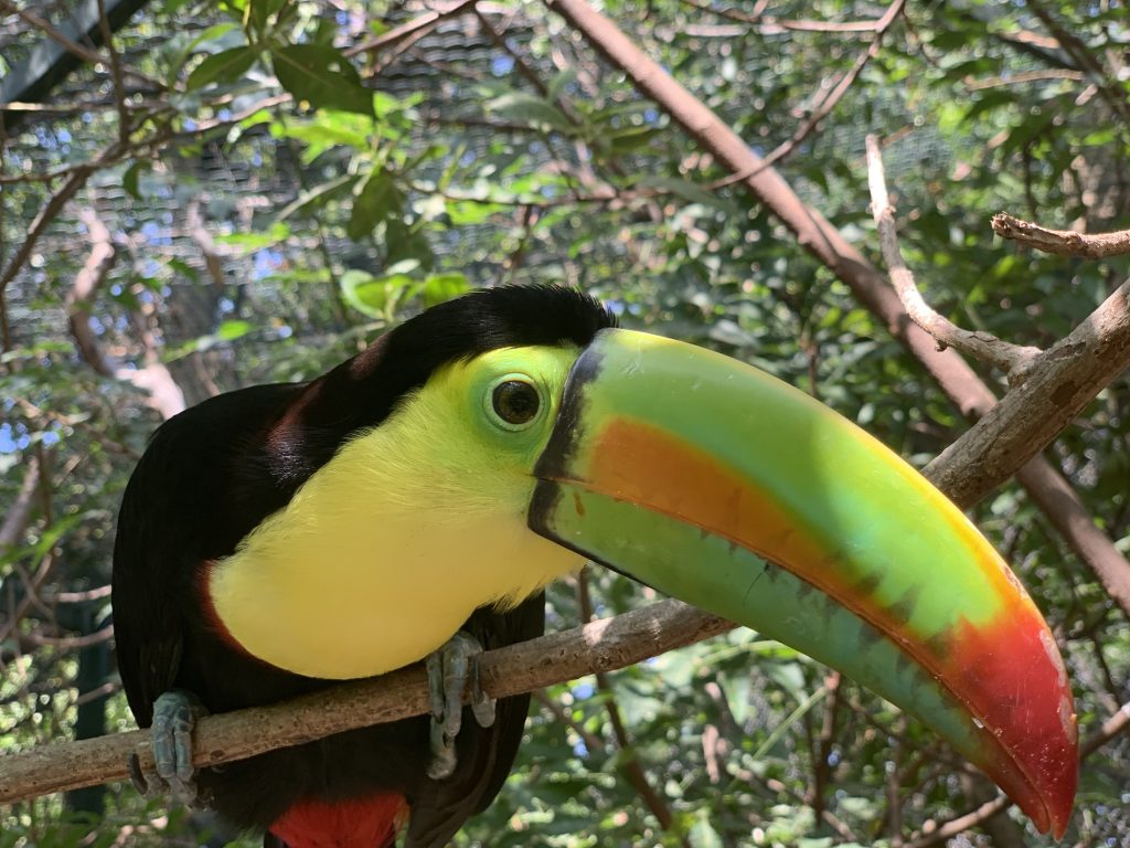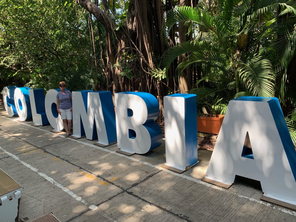 Die Einfahrt nach Cartagena war beeindruckend. Wir mussten um die vorgelagerte Insel herumfahren und sahen die Skyline in der Morgensonne liegen. Schöner Kontrast, weiße Häuser – blauer Himmel! Wir passierten auch das Fort San Fernando de Bocachica auf der vorgelagerten Insel. Der Kapitän hatte gesagt, dass das Kreuzfahrtterminal einen Besuch wert ist und so schlenderten wir bei 35° C am Pier entlang. Am Terminal war eine Art Zoo angelegt wurden, teils mit Gehegen, teils fanden sich die Tiere wahrscheinlich zum Fressen ein. Papageien, Nasenbären und Affen gab es zu bestaunen und endlich sah ich auch Tukane aus der Nähe. In Panama hatte ich nur einen vom Bus aus gesehen, jetzt ganz nah. Beeindruckend diese Farben!